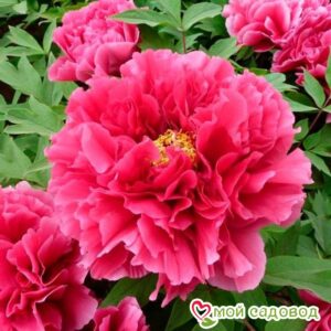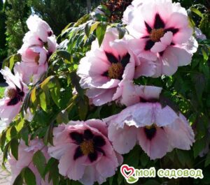 Цветок густомахровый, шаровидно-корончатый, 12 х 6 см, светло-салатового цвета с тёмно-фиолетовыми вкраплениями в основании лепестков. Внутренние лепестки плотно прилегают друг к другу, полностью скрывая сердцевину. Цветки смотрят в стороны или вниз. Стебли тонкие, гибкие. Цветение обильное, в поздние сроки. Высота 120-150 см. Один из самых редких сортов. Место посадки Для посадки пионов понадобится защищенное от ветров место с хорошей освещенностью. Сорта светлой окраски, а также пионы с простыми и полумахровыми цветками можно посадить на частично затеняемом участке, это продлит цветение и защитит цветы от выгорания. ХРАНЕНИЕ ДО ПОСАДКИ: После получения посылки, рекомендуем вскрыть пакет и осмотреть корневище. Почки должны быть плотные и розового цвета. Так же уделите внимание самому корневищу, все сомнительные, потемневшие, сморщенные части удалите, а места среза обработайте зеленкой или залой. Если почки еще не тронулись в рост, а высаживать в открытый почву рано, советуем Вам хранить корневище в холодильнике, обязательно оставляя его в пакете с торфяной смесью или в коробке под снегом. Если почки успели раскрыться это не критично, сохранить до посадки их так же возможно, высадите корень пиона в большой просторный горшок или в любую другую ёмкость.