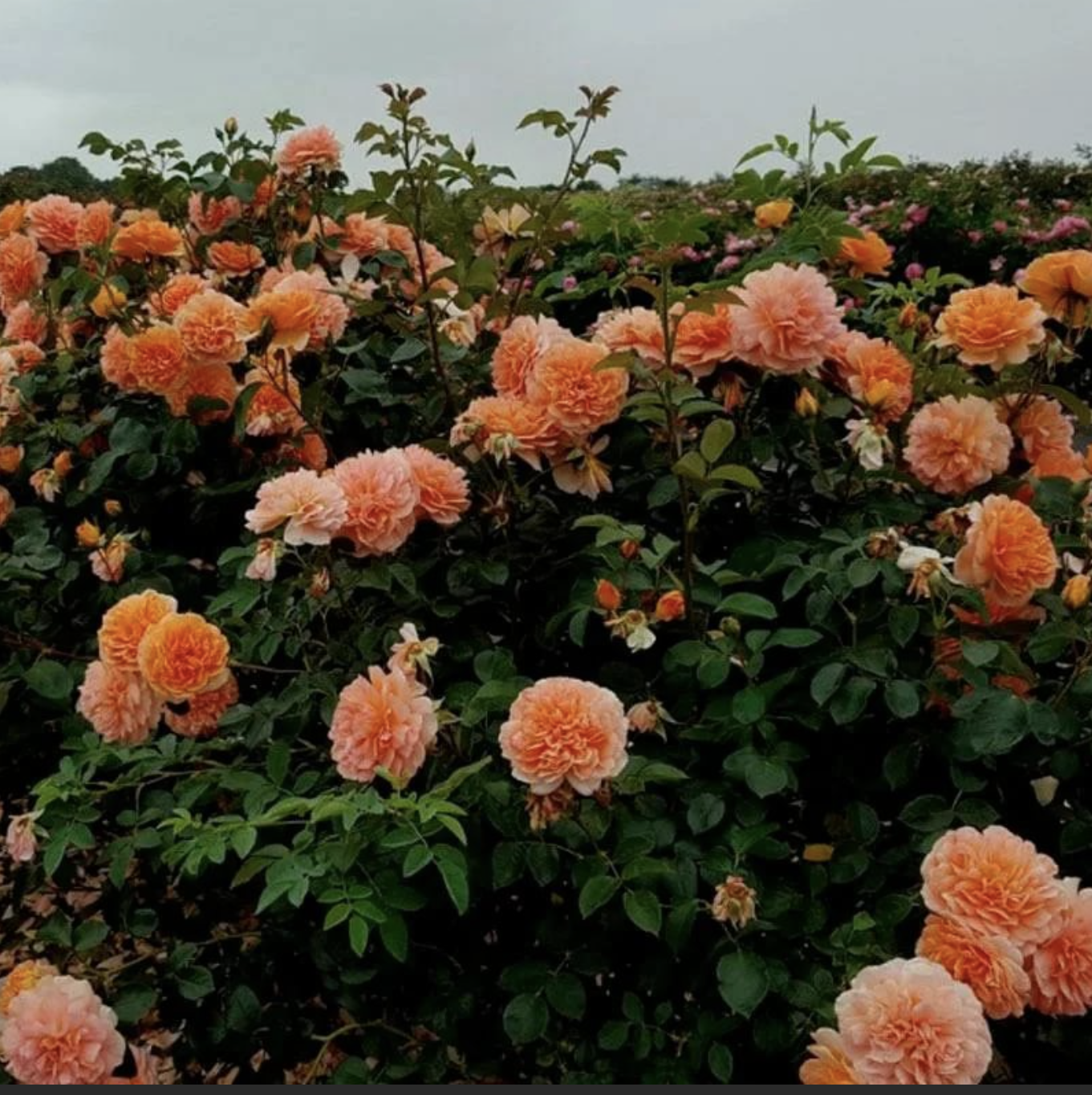 Английская кустовая роза Dame Judi Dench (Леди Джуди Денч ) селекции Дэвида Остина, новинка 2017 года, с цветками насыщенного абрикосово-оранжевого цвета, красиво бледнеющими по краям. Поразительные, с красными кончиками бутоны постепенно раскрываются, чтобы показать большие неплотно заполненные цветочные розетки с приподнятыми лепестками и зеленой «пуговицей» в центре. Цветки густомахровые, диаметром 8 см, в форме рыхлой розетки, собраны в соцветия. Присутствует мягкий легкий чайный аромат. Цветы обильно и продолжительно ярко цветут, показывают хорошую устойчивость к атмосферным воздействиям, выдерживают дождливую погоду, во время которой лепестки аккуратно опускаются. Цветение с июня до поздней осени. Цветки размещаются на сильных, крепких слегка нависающих ветвях. Кустарник очень здоровый, с сильными дугообразными стеблями , которые со временем образуют привлекательный обильно цветущий куст в среднем высотой 110 см, шириной 125 см. Посадка на солнце или полутени на всех типах почв. Можно комбинировать с многолетниками и другими розами в саду.